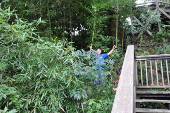 | ぼくたちは斜面林で竹とりです。 | この細い竹で竹笛、紙でっぽうをつくります |
