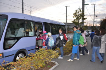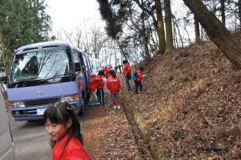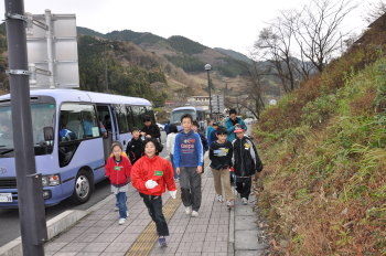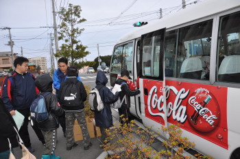 | 学校に朝7時集合。まだ少し眠い時間でした。 | マイクロバス3代に分かれて乗り込みました。 |
