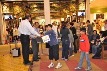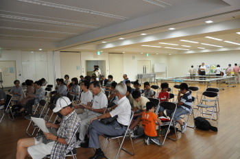 | 表彰式でイオンのギフトカードをいただきました。 | 続いて、これからの投函場所決めのくじの順番の くじびきです。 |