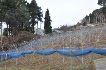 | 遠くにあった山が目の前に | 果樹園がたくさんありました。これはブドウ畑です。 |