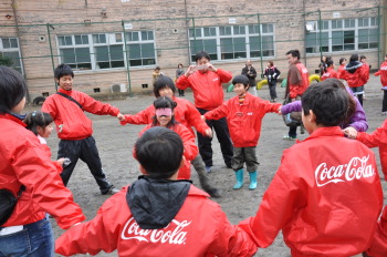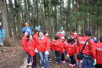 | 開会式がはじまりました。 コカコーラ1リットル作るのに、水6リットルも使うそう です。そこでコカコーラとしても水保全から緑の保全 への社会貢献を始めたそうです。 |