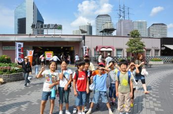| 川口駅前に到着! | 戸塚南小学校エコキッズです!何と30名! 今回は環境委員会、JRC委員会、エコクラブ、4年生が発表しました。 |