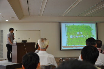 いろいろなグリーンカーテンのとりくみが報告されま した。 |