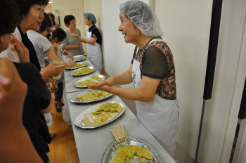 いただきまーす!みんな大仕事の後で、もうぺこぺこ。 ご飯おいしかったですね。 |