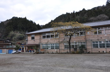 | お昼は廃校になった小学校の教室で食べました。 木造のきれいな校舎でした。 |