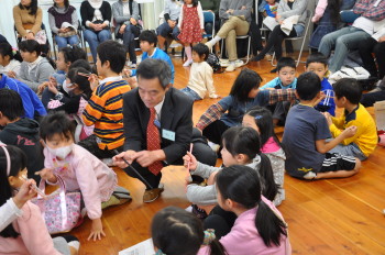 | 小宮山さんも子どもたちの中にはいって教えてくれ ました。 |