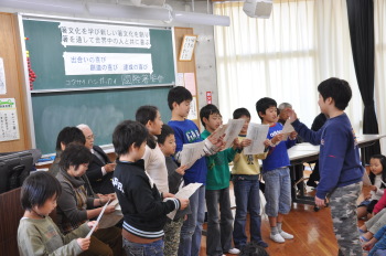 エコクラブの子どもたちによる「箸の歌」の合唱です! |