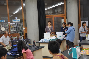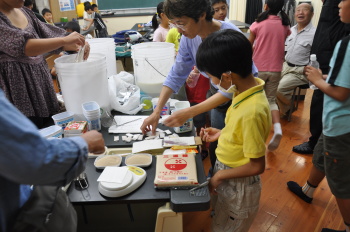 | 箸づくり教室には何と120名もの参加がありました。 エコクラブの子どもたちが受付をしてくれました。 |