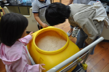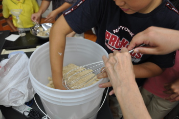 | こちらは大型の入れ物でたくさんつくっています。 できあがったマイエンザは南小まつり、エコマーケット で販売する予定です。 |