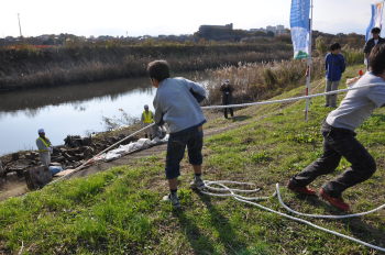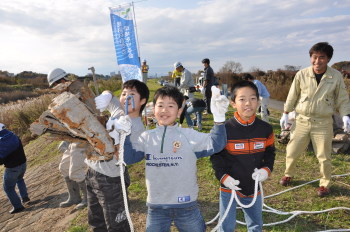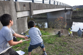どうして、こんなごみが川に落ちているんだ?と疑問に考えながら、力いっぱい子どもたちはごみを釣りあげてくれ