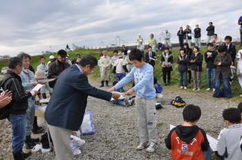 | 続いて、さいたま市長さんからの賞状をいただきました。 綾瀬川と同じように、地域の川、芝川をみんなできれいにし ていこうと強く思いました。 |