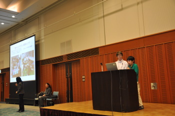 | 本番の開始です。みんな元気に参加していました。 | いよいよ発表です。10分間という長い発表です。 |