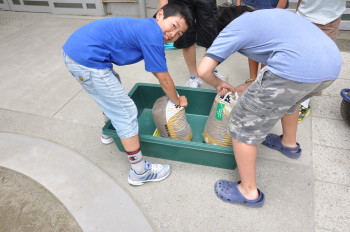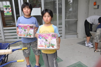 次は、ホタルの床づくり。これは水ゴケです。 水にひたすと、どんどんふくらみます。