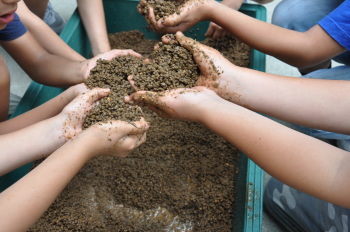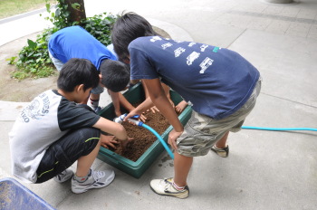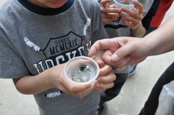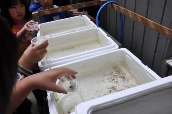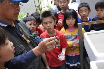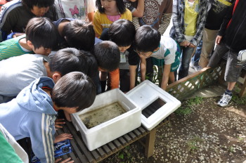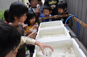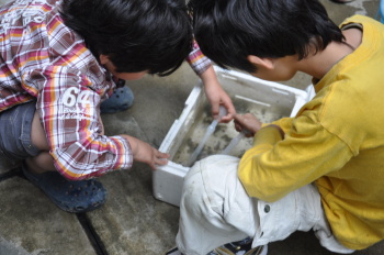 5月14日 ホタルの幼虫が学校にやってきました