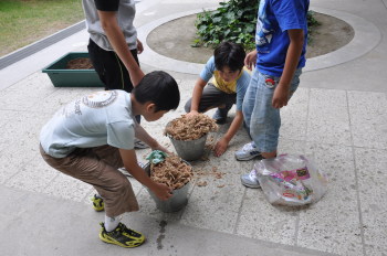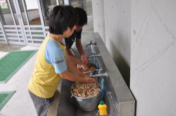安行の田中さんが学校にホタルの幼虫をもってきてくれました。約300匹以上です。