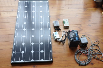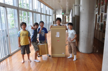 太陽光発電装置が学校に到着しました! これがその部品です。パネルにバッテリーに