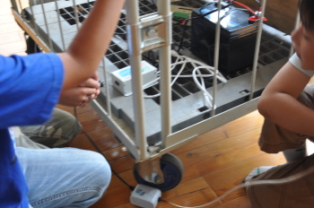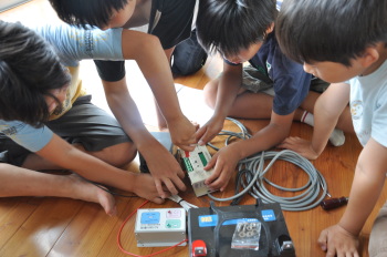 太陽光発電の電気でエアーポンプを回し、ホタルを育てます