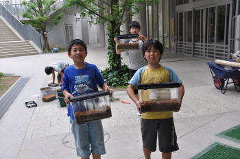 観察が終わったら、どんどん幼虫を入れていきます。
