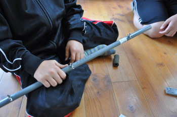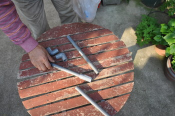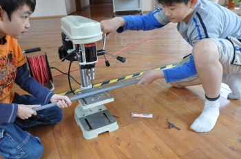 パイプに穴をあけます。