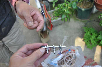 ホタルの幼虫を飼うためのエアーを送るパイプを切断 パイプにこのミニ蛇口をつけます。