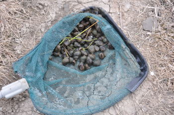 とちゅうから、タニシ以上にザリガニとりにも夢中