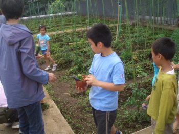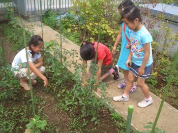 入れ物を持って、屋上にいき収穫していきました。 |