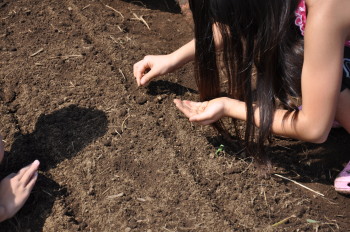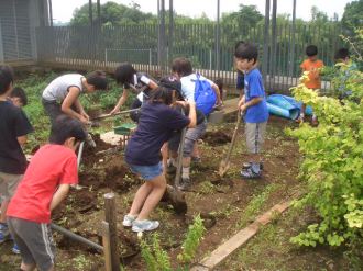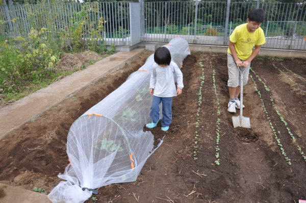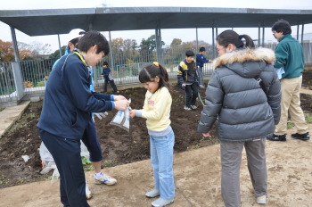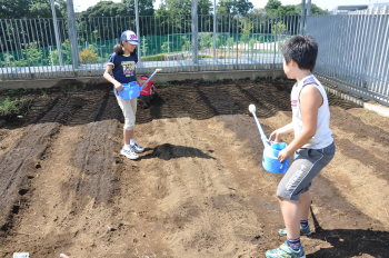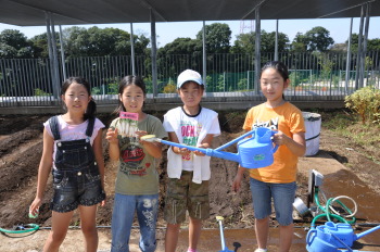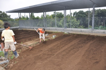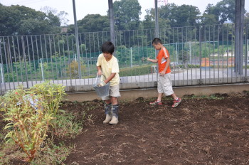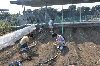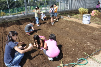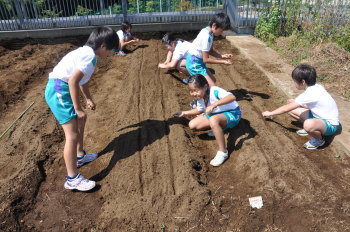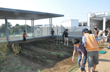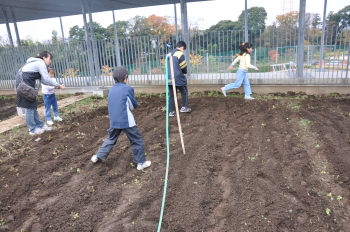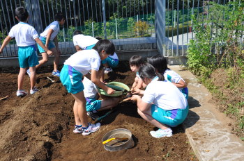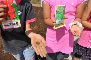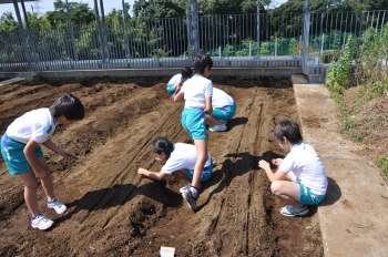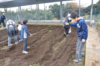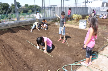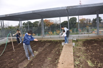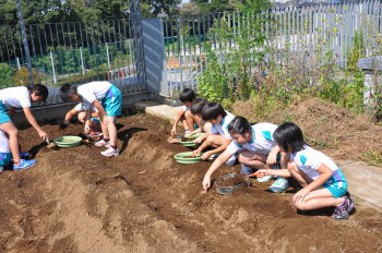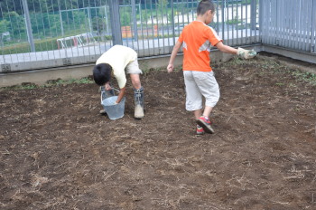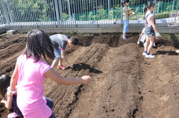 | 13日にこれなかった子を中心に、4年生で種 をまきました。 |