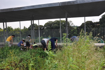 | 環境委員会と美化委員会で協力して草むしりをし ました。 |