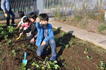| カブがとてもおいしそうです。 | ラディシュもたくさんとれました。 |