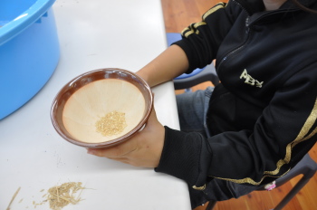 | 手の空いている子どもたちは、稲から精米をしました。 | |