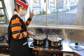 | 続いて、収穫した新鮮な野菜を料理! | 大根カレーに野菜スープです。 |