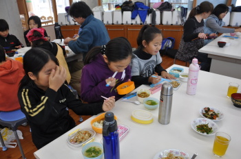 | さあ、もりつけです。 | 感謝して、いただきます。 今までのことを思い出して、味わいながら食べました。 |