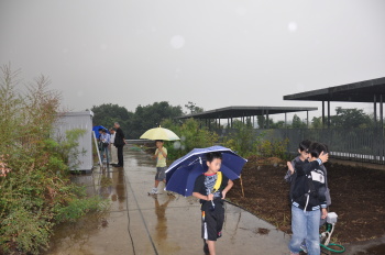 | 秋野菜の準備で集合!しかし… | あいにくの雨で 解散となってしまいました。 |