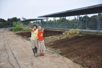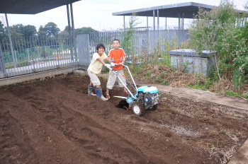 | 野菜がたくさんなった畑も、また土だけになりました。 | 草むしりをして耕耘機で土を掘り返しました。 |