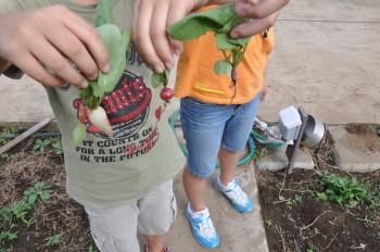 | 立派な二十日大根になっていました。 | ラディシュもできていました。 試しに食べてみると! おいしい! この二十日大根を南小まつりエコマーケットで出荷 してみようと考えてみました! |